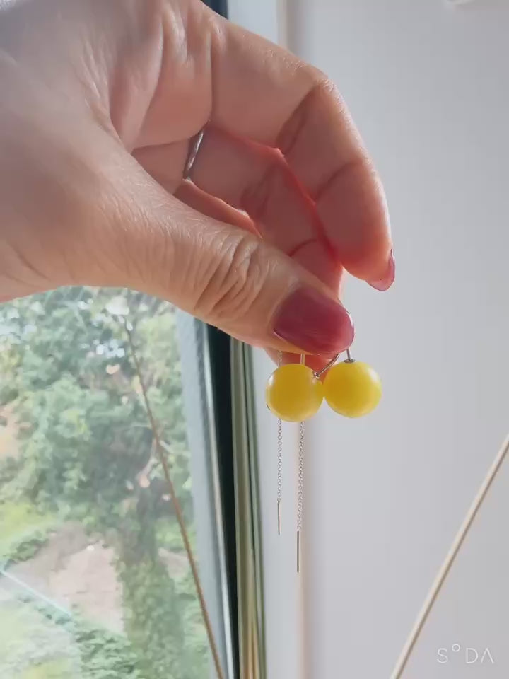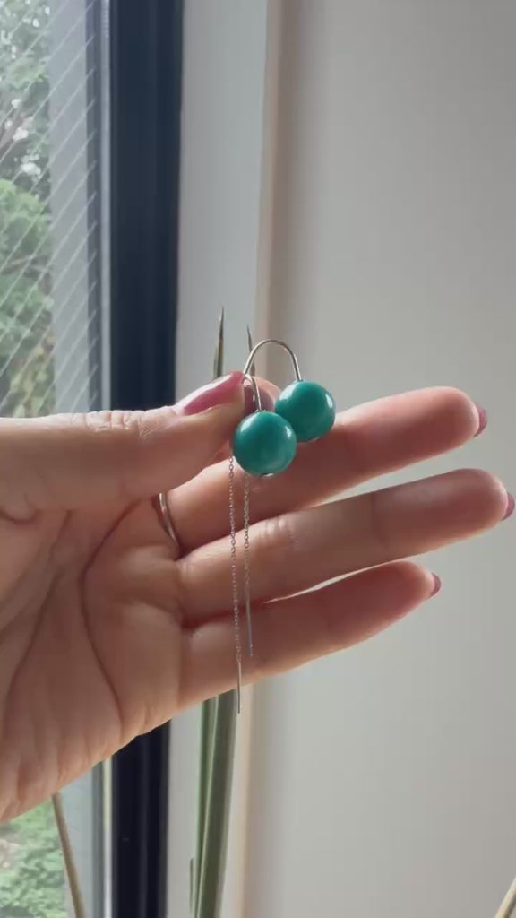 12mmの天然石を、耳馴染みの良いオリジナルフックで仕立てた〈Sway Drop Earrings〉。